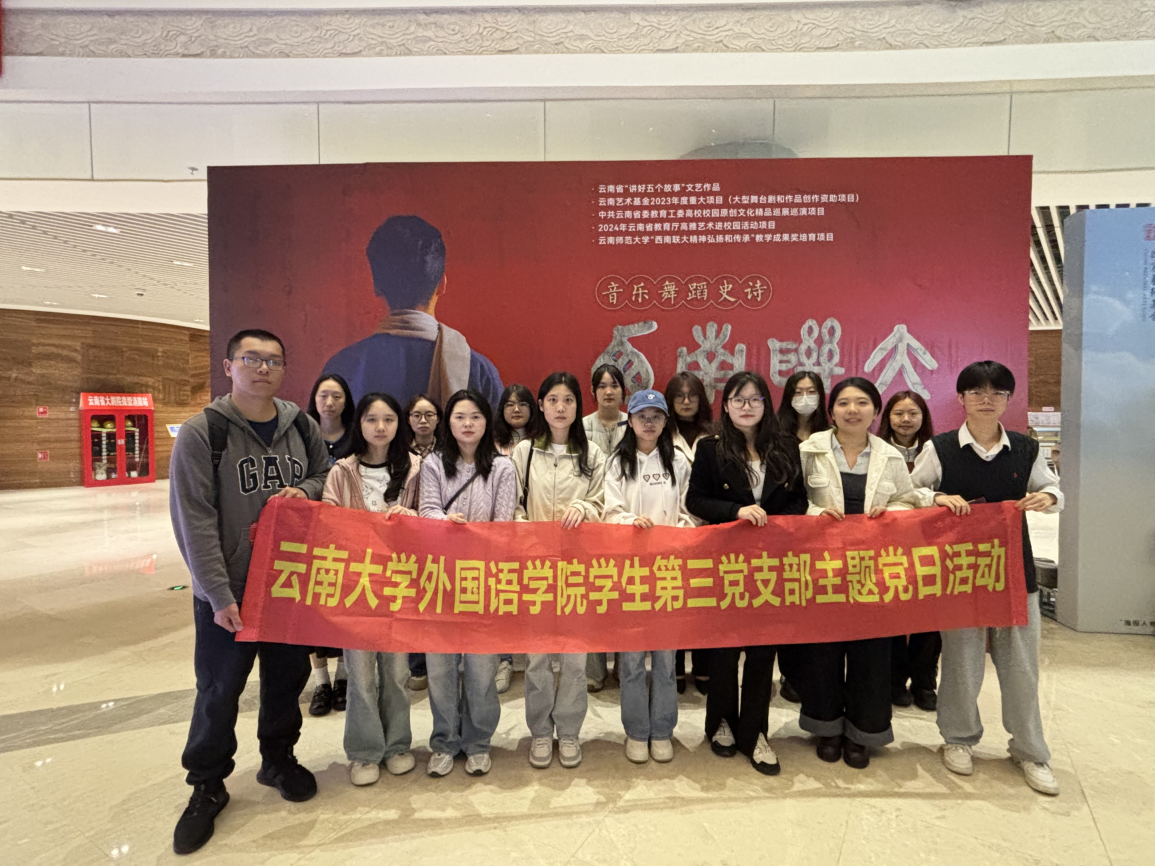 10月24日,565net必赢客户端学生第三党支部成功举办了一场意义非凡的主题党日活动。党员同志们在党支部书记安妮老师的带领下共同前往云南省大剧院观赏了《西南联大》舞台剧,经历了一场穿越时空的历史之旅与精神洗礼。舞台上生动的演绎,让党员们重温了西南联大那段荡气回肠的历史,深切感受到了先辈们在极端困苦环境中坚守学术自由、矢志追求真理的高尚情操。